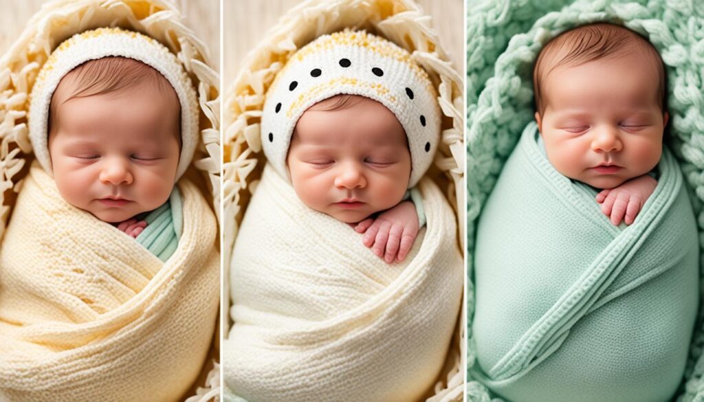 Choosing a comfy wrap is crucial for newborn photos. Use soft, gentle fabrics like muslin, jersey, or mohair. These won’t bother the baby’s skin.