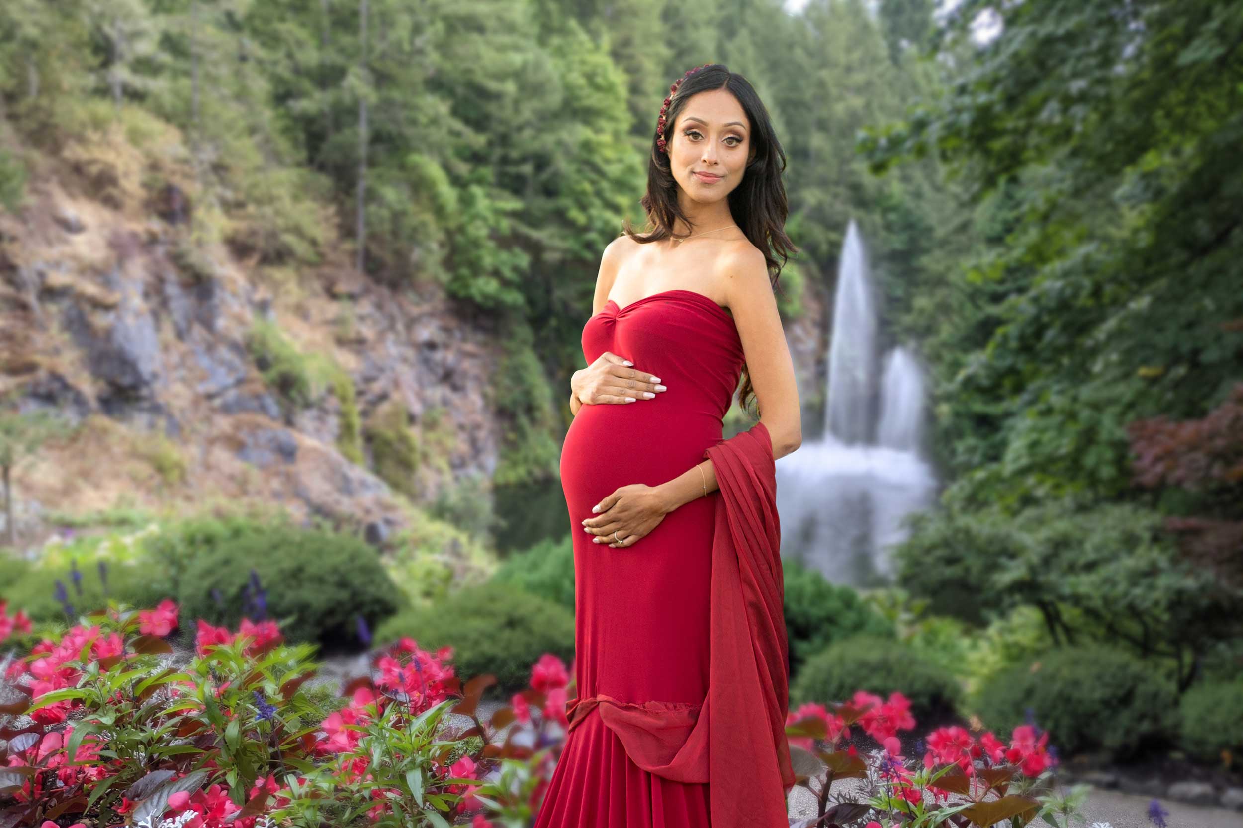 Butchart Gardens in British Columbia is photographers dream destination. It’s a place to take stunning photos of nature’s beauty. This makes it a perfect location for maternity photography. The gardens are open year-round and offer visitors scenic views, flowers, fountains, and acres of green space. These picturesque landscapes make it a photographer’s ultimate destination!